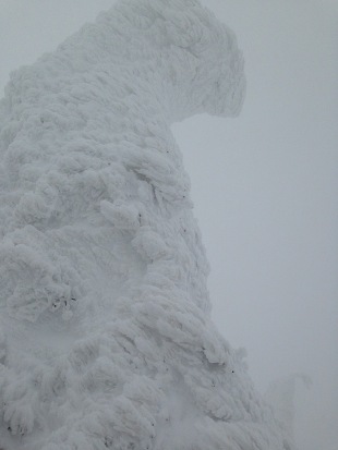 昨日はゲレンデ(1100m標高)で雨が降りましたが、樹氷原(1600m付近の標高)は全く影響がなく、むしろ樹氷が生育していました!