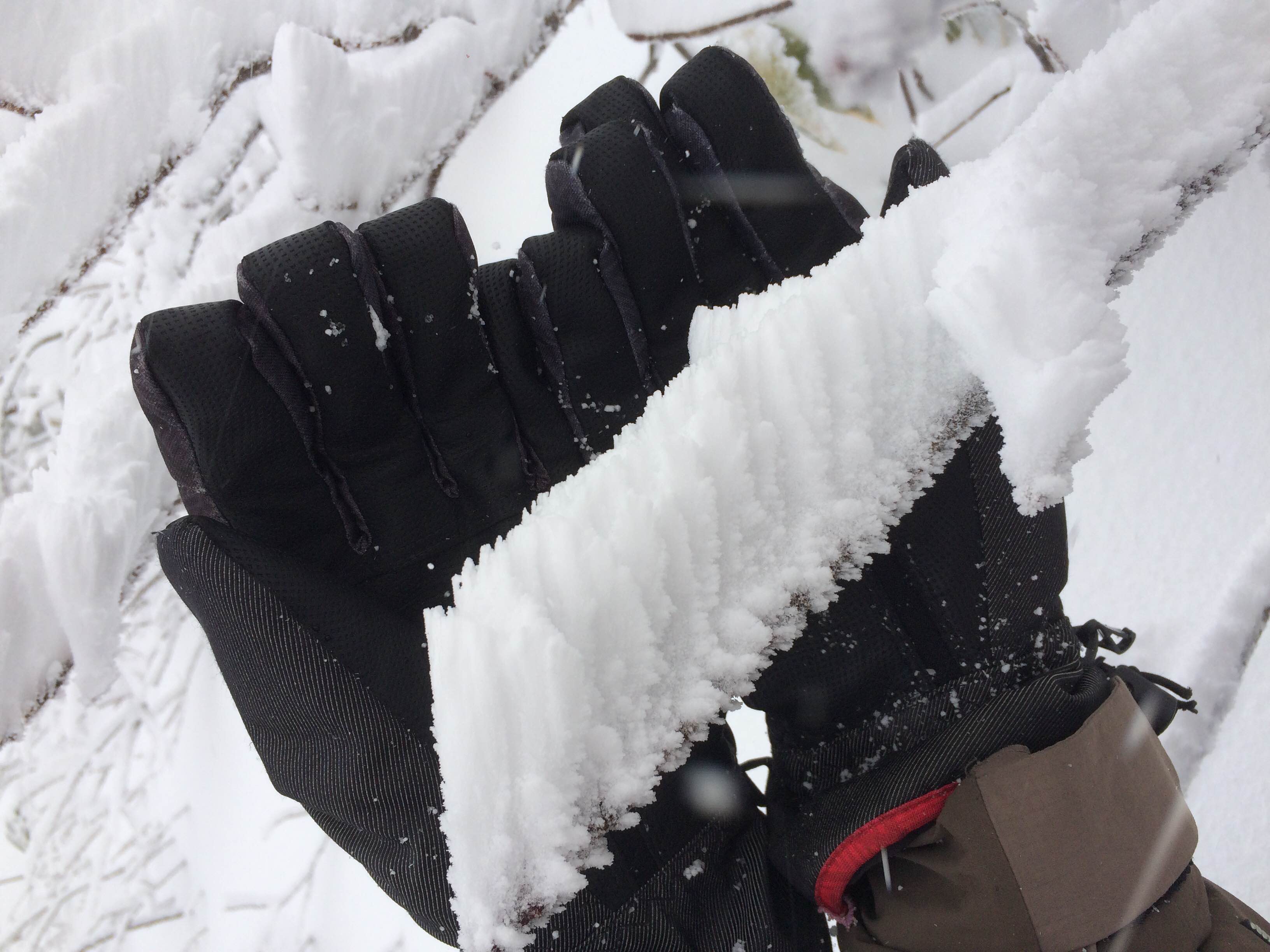 先日12月15日時点で、樹氷事態がまだ出来ていないという更新をさせていただきましたが、昨夜からの積雪と寒波で、樹氷の特徴的な「エビの尻尾」が出来てきました!!10cm弱というところです。