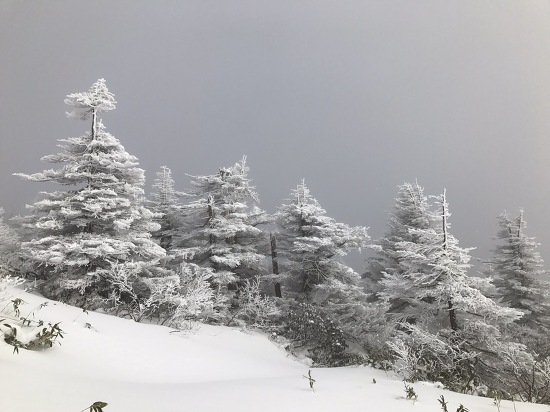 本日深夜より昼まで雪が降り続きましたが、期待をしていたほど樹氷は生育しておらず、雪上車ルートの積雪も十分ではない状態に変わりはありませんでした・・・
